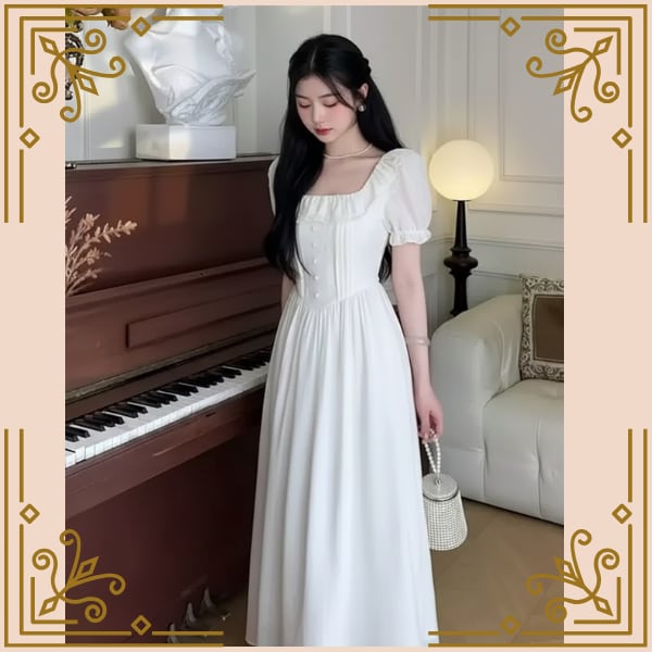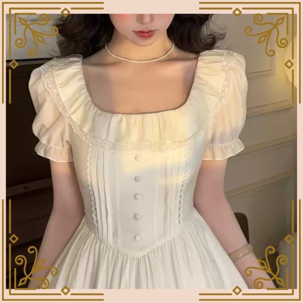 - ♦優しいアイボリーのレトロロングドレス♦ trnd020