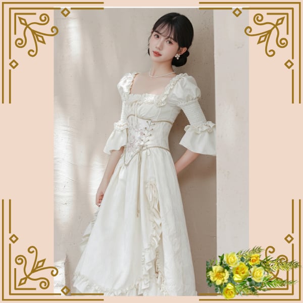 - ♦夢みるホワイトローズの姫さまドレスワンピースフローラルワンピース(ベルト付き)♦ trnd042