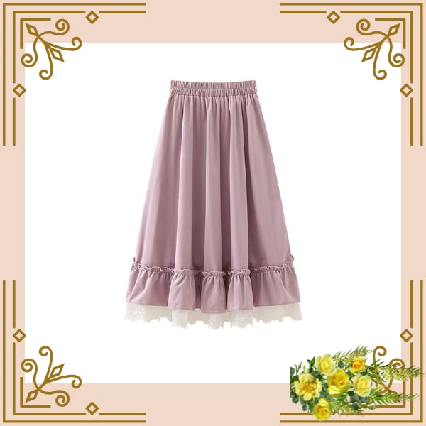 ♦アンティークラベンダーの多段フリルロングスカート♦ trnd043