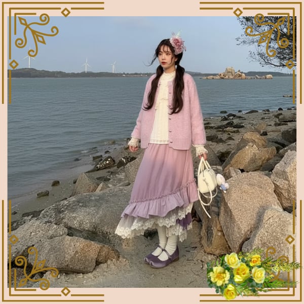 歩くたびにフリルがゆれる、まるで物語の中のようなデザイン。