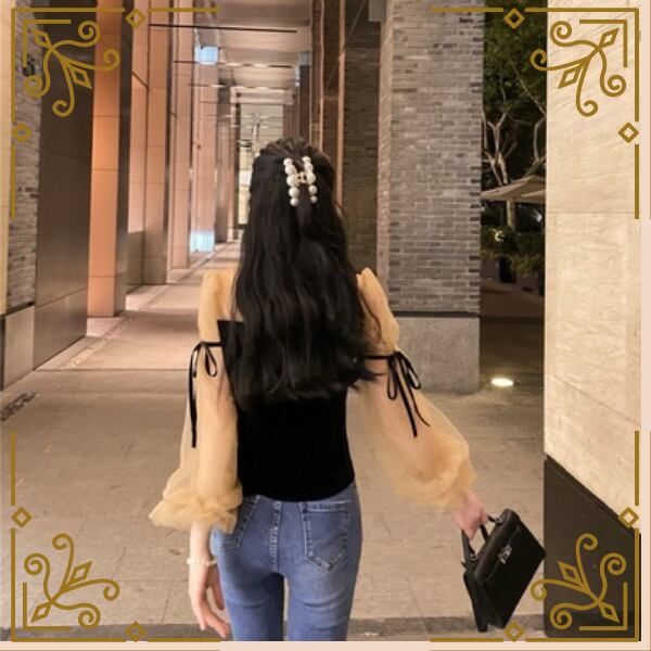 ボトムズにデニムパンツを合わせて甘くなりすぎないようにしてもスタイリッシュ♡