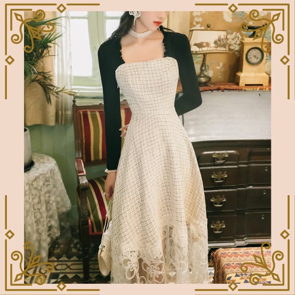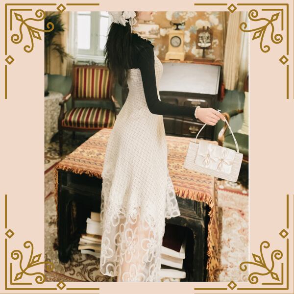 - ♦裾チュールレースのスクエアネックワンピース♦trnd344