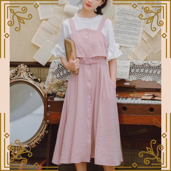 淡いパステル調のジャンバースカートと半袖トップスのset♡