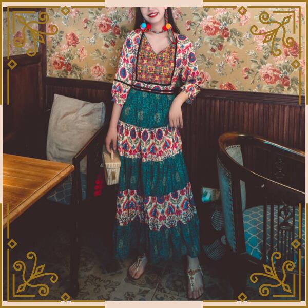 ♦ボヘミアン柄のカラフルワンピース♦trnd852
